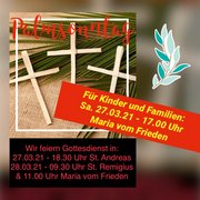 Am Wochenende beginnt mit dem Palmsonntag die „Heilige Woche“. Wir laden zu den Gottesdiensten herzlich ein. Besonders sind Kinder mit ihren Familien am Samstag, 27.03.21 um 17.00 Uhr nach Maria vom Frieden, Erbach eingeladen.... weiterlesen