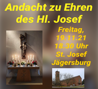 Am Freitag, 19.11.21 um 18.30 Uhr in St. Josef, Jägersburg. Herzliche Einladung zur nächsten Andacht im Josefsjahr. Der Gottesdienst wird mitgestaltet vom Kirchenchor Jägersburg der besonders an diesem Abend auch die Heilige... weiterlesen