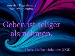 Bibelstelle: Apg 20, 28-38 (Einheitsübersetzung) In jenen Tagen sagte Paulus zu den Ältesten der Gemeinde von Ephesus: Gebt acht auf euch und auf die ganze Herde, in der euch der Heilige Geist zu Bischöfen bestellt... weiterlesen