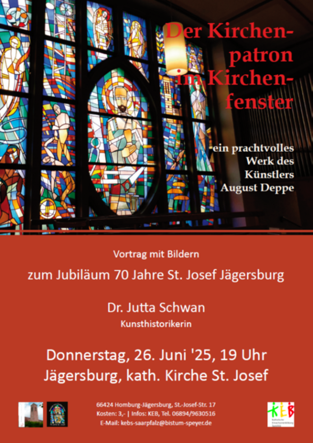 Die Katholische Erwachsenenbildung und die Gemeinde St. Josef laden ein zum Vortrag mit Bildern zum Jubiläum 70 Jahre St. Josef Jägersburg. Referentin ist Kunsthistorikerin Dr. Jutta Schwan.