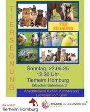 Herzliche Einladung zur Tiersegnung am Sonntag, den 22. Juni 2025 um 12.30 Uhr im Ria Nickel Tierheim in Homburg, Erbacher Bahnhaus 3.
