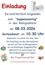 Der Gemeindeausschuss St. Remigius lädt herzlich ein zum Suppensonntag am 08. März 2026.