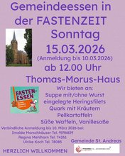 Gemeindeessen in der Fastenzeit am Sonntag, den 15. März 2026 ab 12.00 Uhr im Thomas-Morus-Haus.